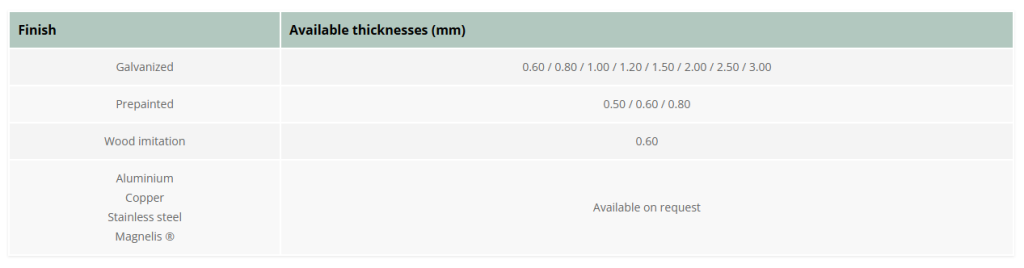 Our flashings are made from coated steel sheets according to the following standards: